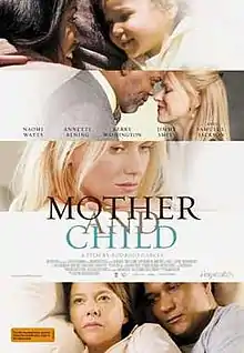 Mother and Child is a 2009 drama film directed and written by Rodrigo García. It premiered on September 14, 2009, at the 2009 Toronto International Film Festival[2] and at the Sundance Film Festival on January 23, 2010,[3] and was the closing night selection in the 2010 Maryland Film Festival. It had a limited release in the United States beginning May 7, 2010.[4]