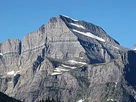 Mount Gould (9,557 ft (2,913 m)) is a peak on the Continental Divide in Glacier National Park, Montana, United States.[4] It is the highest point of the Garden Wall, a distinctive ridge of the Lewis Range. It is most notable for its huge, steep east face, which drops 4,000 ft (1,220 m) in only one-half mile (0.8 km). This face provides a backdrop to Grinnell Lake, and is often photographed.