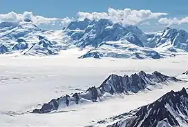 Mount Huxley is a 12,216-foot (3,723 meter) glaciated mountain summit located in the Saint Elias Mountains of Wrangell-St. Elias National Park and Preserve, in the U.S. state of Alaska. The remote peak is situated 75 mi (121 km) northwest of Yakutat, and 8.7 mi (14 km) west-northwest of Mount Saint Elias. The peak rises above the Columbus Glacier and Bagley Icefield to its north, the Tyndall Glacier to the south, and the Yahtse Glacier to the west. Precipitation runoff from the mountain drains into the Gulf of Alaska. The mountain was named in 1886 by English mountaineer Harold Ward Topham for Thomas Henry Huxley (1825-1895), an English biologist.[4] The mountain was officially named Huxley Peak in 1917, but the name was officially changed to Mount Huxley in 1968 by the U.S. Board on Geographic Names. The first ascent of the peak was made June 9, 1996 by Paul Claus who landed his plane at 11,500 feet elevation on the western flank (700 vertical feet below the summit) and climbed the remaining distance to the summit.[5] The second ascent of Mt. Huxley, and first complete ascent from base to summit, was made in June 2018 by Scott Peters, Andrew Peter, and Ben Iwrey starting from the Columbus Glacier.[6]