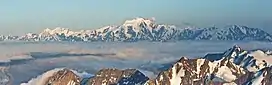 Mount Miller is an isolated peak of the Saint Elias Mountains in Alaska, United States. It is notable for its position among spectacular icefields, its distance from any inhabited place, and its large rise above local terrain. It is over 65 miles (105 km) from McCarthy, the nearest habitation, and over 105 miles (169 km) away from Yakutat, the nearest significant town. Exemplifying the size of the mountain, the south flank rises 9,000 feet (2,700 m) above the Duktoth River valley to the south in approximately 9 horizontal miles (14 km).