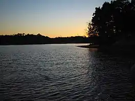 Mountain Island Lake is a lake northwest of Charlotte, North Carolina created in 1924 to coincide with the building of Mountain Island Hydroelectric Station. It is named after the mountain which appears as an island in the lake, and the surrounding area is identified by the lake's name. The shape of the lake follows the meander of the Catawba River's course, dammed near the Mount Holly Wastewater Plant. Full pond elevation is approximately 647.5 feet (197 m). The lake has around 3,281 acres (13 km2) of surface area and 61 miles (98 km) of shoreline.