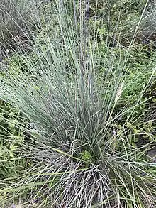 Muhlenbergia lindheimeri is a species of bunch grass, 3-6' H, known by the common names big muhly, blue muhly,[1] and Lindheimer's muhly. It is native to North America, where it can be found in northern Mexico and up to the Edwards Plateau region of Texas.[2] It is also grown as an ornamental grass.[3] as it is useful as a green screen (instead of Pampass grass), erosion control, water retention and nest material for many species of birds[1][4]