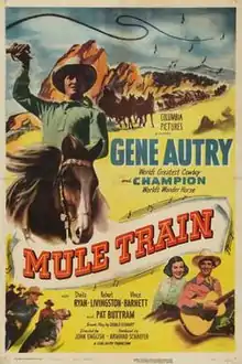 Mule Train is a 1950 American Western film directed by John English and written by Gerald Geraghty. The film stars Gene Autry, Sheila Ryan, Robert Livingston, Frank Jaquet, Vince Barnett and Syd Saylor. The film was released on February 22, 1950, by Columbia Pictures.[1][2][3]
