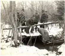 Initially, it was suspected that Martin's disappearance was linked to a sex slavery ring.[1] However, her body was discovered in the forested wilderness of Northmoreland Township, Wyoming County, on December 21, 1938, about 25 miles (40 km) from her home.[3][6][8] The discoverer was 19-year-old Anthony Rezykowski, who was trapping muskrats in the area.[2][3] Rezykowski noticed a large burlap bag partially submerged in 2 feet (0.61 m) of water in a creek.[5] Upon further investigation, he found the bag to contain the mutilated body of a young woman with no clothing. The body was soon identified as Margaret Martin.[2] At the time of her body's discovery, she had been dead for at least 24 hours. If not for Rezykowski's discovery of her body, it may have gone unnoticed for several years.[5]
