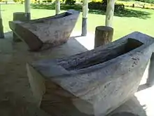 Samoan Talipalau log drums at Piula Theological College, distant ancestor of the Fijian Lali drums