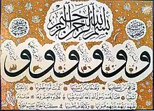 However, during the 1940s, his skills in classical calligraphy found an outlet when he became part of a major restoration project which worked on repairs to numerous manuscripts in a variety of styles and the restoration of calligraphic reliefs and monumental art in historic, public buildings, including many mosques.[6] In 1948, he was appointed to the position of 'old writing teacher' at the Academy of Fine Arts in Istanbul; a position he retained until his retirement in 1963. One of his responsibilities was to write the diplomas for those who were about to graduate from the academy.[7]