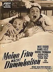 My Wife Is Being Stupid or My Wife Is Acting Silly (German: Meine Frau macht Dummheiten) is a 1952 West German comedy film directed by Géza von Bolváry and starring Inge Egger, Hans Holt, and Marina Ried.[1] It was made at the Göttingen Studios. The film's sets were designed by the art directors Mathias Matthies and Ellen Schmidt.