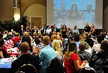 A mystery dinner is a popular type of dinner theater in which the play is a murder mystery, and the diners are invited to solve the mystery as they eat and watch the play. In many mystery dinners, there is no separate stage from the eating area; instead, the actors are mixed in with the diners — and often improvise dialog with diners — creating a more immersive atmosphere.[1][2]