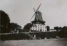 Copenhagen's bastioned fortification ring was for centuries dotted with windmills. Only two of these so-called "rampart mills"—Lille Mølle on Christianshavn Rampart and Kastelsmøllen in Kastellet—have survived in their original location. St. Peter's Mill was built in 1853 on Helmer's Bastion, part of Copenhagen's North Rampart, replacing a 17th-century post mill. Its name was taken after the adjacent street Sankt Peders Stræde. It was used as a grain mill.[1]