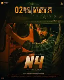 N4 is a 2023 Indian Tamil-language crime-thriller film written and directed by Lokesh Kumar.[1] The film stars Michael Thangadurai, Gabriella Sellus, Akshay Kamal, Afsal Hameed, Vinusha Devi, Pragya Nagra, Anupama Kumar in pivotal roles whilst Abhishek Shankar, Vadivukkarasi, Azhagu and Subhalaxmi Parida play supporting roles.[2][3][4][5][6]