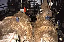Two of the yacht's Brown-Curtis steam turbines in 2001, when she was in Liverpool