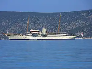 The yacht was then towed to Devonport, Plymouth and then to Clarence Dock, Liverpool for restoration.[24][25][26] The first phase of her restoration was delayed when her restorer, Cammell Laird, went into receivership in 2001.[1] She ceased to be Romanian cultural patrimony in 2002.
