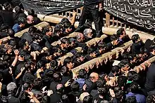 Nakhl Gardani (Persian: نخل گردانی, Persian pronunciation: [næxl ɡærdɑːniː]) or Nakhl Bardari is a Shia religious ritual carried out on the day of Ashura for commemorating the death of Husayn ibn Ali, the grandson of the Prophet Moḥammad and third Shia Imam. Nakhl is a wooden structure used as a symbolic representation of the Imam's coffin and Nakhl Gardani is the act of carrying the Nakhl from one place to another, resembling an Imam's funeral.[1]