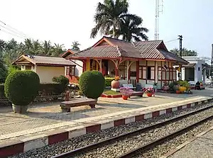 Nakhon Chum railway station is a railway station in Nakhon Chum Sub-district, Ban Pong District, Ratchaburi. It is a class 3 railway station 74 km (46.0 mi) from Thon Buri railway station. Nakhon Chum Station is one of the stations where the main station building is on the passing loop.