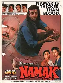Namak (lit.โ€‰'Salt') is a 1996 Hindi-language action film directed and produced by Kawal Sharma. The film stars Sanjay Dutt and Farah Naaz.[1] The music of the film was composed by Anu Malik. The film was a remake of the 1975 super-hit Pakistani film Pehchan starring Shabnam and Nadeem.[2]