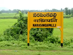 Narasingapalli railway station (station code:NASP[2]), is an Indian Railways station in Narasingapalli, a village in Visakhapatnam district of Andhra Pradesh. It lies on the Vijayawada–Chennai section and is administered under Vijayawada railway division of South Central Railway zone.