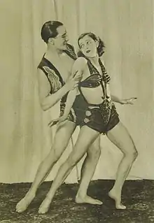 In 1924, after adopting the name Nattova, she teamed up with French dancer Gene Myrio (born Henri Jean Raoul Delteil, 18991975). The pair headlined at the nightclub Au Canari as an adagio team, combining dance with graceful acrobatics. The impresario Albert de Courville then booked them to appear in a revue at the London Palladium. They were very successful, the British magazine Theatre World commenting that their dancing was "exquisite and of a quality rarely seen outside the Russian ballet." Nattova was seen as beautiful and creative, designing her own sets and costumes, but also had a volatile temperament. She and Myrio appeared in de Courville's next production, Sky High in 1925, alongside Australian performers Toots and Lorna Pounds. However, there was tension between Nattova and the sisters, and she and Myrio left the show. They performed together in other cabaret shows in London, where they were seen by American booking agent William Morris, who offered them a place in the New York show The Greenwich Village Follies.[1]