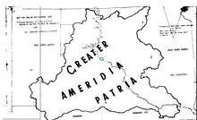 Map of the Greater Ameridia Patria, proposed by the NAARP in 1973. Proposed capital of Tecumseh in Green[1]