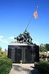 The US National Iwo Jima Memorial is a memorial on Ella Grasso Boulevard, near the New Britain/Newington town line in Connecticut.[1] It was erected by the Iwo Jima Survivors Association, Inc. of Newington, Connecticut. It was dedicated on February 23, 1995, on the 50th anniversary of the flag raising on Iwo Jima. It is dedicated to the memory of the 6,821 US servicemen who gave their lives during the 1945 Battle of Iwo Jima. Inscribed on the base are the names of the 100 men from Connecticut who gave their lives in the battle.[2]
