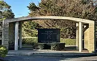 | Tangiwai Memorial, Karori Cemetery | Wellington | The Tangiwai Memorial at Karori Cemetery was designed by Gordon Wilson in his role as government architect. The memorial was opened on 26 March 1957.[2] |