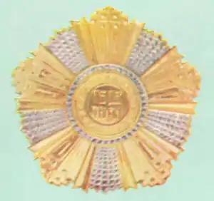 The decoration was created in 1950 and was awarded to any person who performed "grandiose works, remarkable deeds, exhibited bravery, or for those who have honored and served the country by lofty virtues and outstanding knowledge."