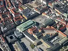 The first theatre was commissioned in 1810 by King Maximilian I of Bavaria because the nearby Cuvilliés Theatre had too little space. It was designed by Karl von Fischer, with the 1782 Odéon in Paris as architectural precedent.[1] Construction began on 26 October 1811 but was interrupted in 1813 by financing problems.[2] In 1817 a fire occurred in the unfinished building.