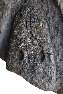 - The stratigraphical collection comprises 30.000 objects. These are largely fossils and rocks from Mesozoic outcrops of the Bielefeld area, including important fossils such as the holotype specimens of the temnospondyl amphibian Cyclotosaurus buechneri[15] and the plesiosaur Arminisaurus schuberti,[16] which were both found within the city limits of Bielefeld. The palaeontological collection is supplemented by fossils of Pleistocene mammals such as a nearly complete skeleton of a Woolly rhinoceros, found in the area.