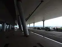 The airport building is a two-story building with reinforced concrete boree piles. The ground floor is for passenger arrivals and the first floor for passenger departures. The west hall is for local passengers, the east hall and the north hall for international passengers.