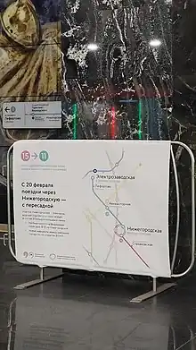 From 17 February to 19 February 2023, the section of the line from Elektrozavodskaya to Nizhegorodskaya was closed in order to connect it to the Bolshaya Koltsevaya line.[4] On 20 February, the section was transferred from the Nekrasovskaya line to the Bolshaya Koltsevaya line.[5]