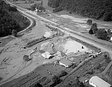 Flash floods and mudslides killed 153 people, 31 from Roseland, Tyro, and Massies Mill alone.[6] Over 133 public bridges were washed out in Nelson County, while some communities were under water.[7] In the tiny community of Davis Creek, 52 people were killed or could not be found; only 3 of 35 homes were left standing after the floodwaters receded.[6] The bodies of some people have never been found; others washed as much as 25 miles (40 km) downstream along the creeks and rivers. The entire county was virtually cut off, with many roads and virtually all bridges, telephone, radio, TV, and electric service interrupted.