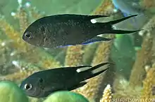 Neopomacentrus cyanomos, commonly known as the regal demoiselle, is a fish native to the Indo-Pacific region from the Persian Gulf, the Red Sea and the coastal waters of east Africa east to the Philippines, north to southern Japan, south to northern Australia and Melanesia.[1] It has also been found as an invasive species in the Gulf of Mexico, off the Yucatan Peninsula, although how they arrived there is unknown.[2]