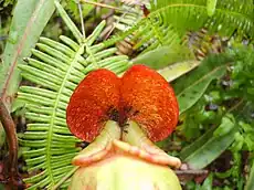 In open areas, N. bokorensis is sometimes sympatric with other carnivorous plants, including sundews and bladderworts.[11] The N. bokorensis plants found by François Mey in 2007 grew alongside a crimson form of Drosera peltata, but this population was destroyed by the time of the author's return in 2009.[12] Drosera peltata still grows sympatrically with N. bokorensis at "Location C", a massive clearing discovered in 2011 on the Bokor plateau.[11] The D. peltata plants at this site range in colour from yellowish-green to red and frequently exceed 30 cm in height.[11] Nepenthes bokorensis also shares this habitat with another sundew—D. burmannii—as well as with various grasses, stunded shrubs, and lithophytic orchids.[11] Local bladderwort species include U. bifida, U. odorata, U. minutissima, U. striatula, U. subulata, and U. uliginosa.[13][14][15][16]