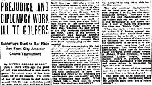 14. "Prejudice and Diplomacy work ill to golfers". The Chicago Defender, N. S.,1922