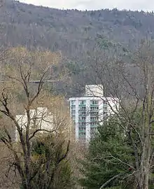 Originally named simply Nevele, the resort was renamed the Nevele Grande when it again merged with the adjacent Fallsview resort after the Nevele was sold by the Slutsky family in 1997.[9] By 2006 the Nevele Grande had fallen on hard times and the Fallsview property was sold.[10] The Fallsview has since reopened as the Honors Haven Resort and Spa.[11] The original Nevele property, containing a distinctive high-rise, remained open for several years after the split as the Nevele Grande resort. Owners Mitchell Wolff and Joel Hoffman struggled financially and failed to pay taxes[12] and eventually shut down the resort without notice after the 2009 Fourth of July weekend.[9]