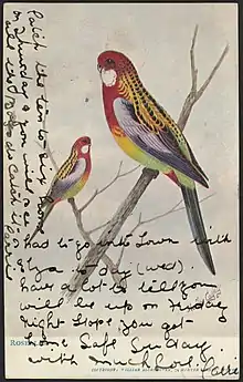 As well as an author and artist, Cayley was a prominent ornithologist. A Fellow of the Royal Zoological Society of New South Wales, he was elected President in 1932–1933. He was also President of the Royal Australasian Ornithologist's Union in 1936–1937. He was a Trustee of the Royal National Park from 1937–1948 and was instrumental in establishing the zoological cabin there.[7] Cayley was long associated with the Gould League of Bird Lovers of New South Wales and was made an Honorary Life Member in 1935. The League published a large number of his paintings and his birds were reproduced on more than two million membership cards.[8] Cayley truly believed in the value of ornithology and in memory of his father, he created a scholarship in Economic Ornithology at Sydney University, to be administered by the League and funded by royalties from What Bird is That? The scholarship was eventually extended to post-graduate students involved in wildlife study or management relating to birds from universities around Australia. It endured for around 50 years, with the final two 'Gould League of NSW Cayley Memorial Scholarships' awarded in 2010.[9]