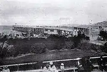 The first pier was built from timber. Construction began in 1891 and it was officially opened by the Governor of New Zealand, the Lord Glasgow, on 18 January 1894.[1] Other dignitaries who attended the opening included the Mayor of Christchurch (Walter Cooper), the Mayor of Linwood (J. R. Brunt), and two members of the House of Representatives (George John Smith and William Whitehouse Collins). It started raining just as the opening ceremony finished, and planned fireworks were postponed. The pier had been built to a length of 700 feet (210 m).[2][3] There were plans to build an octagonal end to the pier including a large building, but this was never carried out. Over time, the pier decayed. The city council ordered the pier to be demolished, and this was done during just four and a half hours in the early morning of 12 October 1965 on a receding tide.[1]