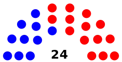 The New Hampshire Senate is the upper house of the New Hampshire General Court, alongside the lower New Hampshire House of Representatives. The Senate has been meeting since 1784.[1] The Senate consists of 24 members representing Senate districts based on population. There are 14 Republicans and 10 Democrats currently serving in the Senate.