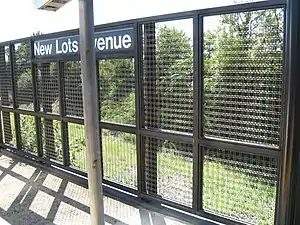 The New Lots Avenue station is an elevated station on the BMT Canarsie Line of the New York City Subway. Located at the intersection of New Lots and Van Sinderen Avenues at the border of Brownsville and East New York, Brooklyn,[3] it is served by the L train at all times.[4]