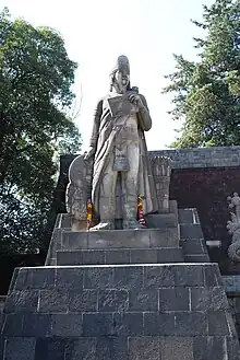 Bronze casting done of Nezahualcoyotl by Jesús Fructuoso Contreras in the Garden of the Triple Alliance located in the historic center of Mexico City.