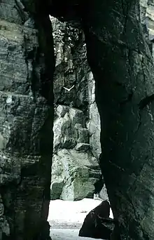 The habitat is characterized by rocky shores and coastal cliffs that reach an elevation of 150 m (490 ft) above sea level.