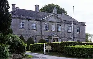 Nibley Hall, North Nibley in Gloucestershire is a Grade II* listed house on the English Heritage Register.[1] The Neoclassical Georgian facade dates from 1763 behind which lies the Jacobean manor house built in 1609 by John Smythe the Elder, Steward at the time to Lord Berkeley. Nibley Hall is known as an example of exceptional Georgian design and for its stucco rococo style ceiling located in its drawing room thought to have been inspired by the work of the famous Swiss-Italian stuccoist Giuseppe Cortese. Today Nibley Hall is a private residence.[2]