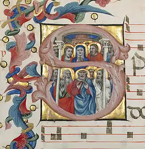 Niccolò di Giacomo da Bologna (c. 1325 – c. 1403), usually known as Niccolò da Bologna, was one of the most important and prolific manuscript illuminators in 14th-century Bologna. He was active from about 1349 to 1403. He is known for his expressive figures and crowded, action-filled narrative scenes. The first signed works by Niccolò are all copies of Gratian's ‘Decretals’, one of the standard works of canon law. He and his workshop later illuminated a variety of other manuscripts, including university texts, choir books and other liturgical texts, private devotional books, and even works of secular poetry and drama. Niccolò also illuminated a number of specialty books made for various corporate groups in the city, such as statute books and guild registers. He was a financially successful artist who was appointed illuminator to the city of Bologna in the 1380s and was an active member of city government. He was the uncle of the artist Jacopo di Paolo (active 1371-1426).