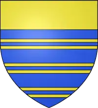Coat of arms of Nicholas Meinill, Lord of Whorlton, Azure, three bars gemelles, and a chief or.