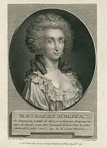 Marie Nicole Le Guay d'Oliva (Paris, September, 1761 – Fontenay-sous-Bois, 1789), was a French prostitute and memoirist. She is known in history as one of the participants of the famous fraud known as the Affair of the Diamond Necklace.[1]