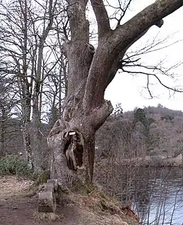 Niel Gow's Oak is a sessile oak (Quercus petraea) located near to the towns of Dunkeld and Birnam, Scotland,[1] which is around 300 years old.[2] It lies within the Craigvinean Forest on the south bank of the River Tay. It accessible by the public and lies on the Inver Walk public footpath, part of the Dunkeld Path Network.[3] It lies between the path and the riverbank in a field used to graze sheep and horses.[4]