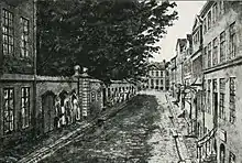 Lille Helliggejststræde seen on a print with the wall that was demolished in 1779