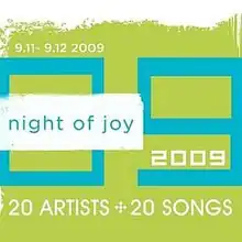 The official 2009 lineup was announced in March 2009. It featured more rock bands than usual and incorporated three acts common to both days of the performance, following "Conversations" with acts performing one of the two days. This is the final Night of Joy held at Disney's Hollywood Studios.
