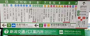 - ↑ 新潟駅前周辺バスのりば [Bus stop map around Bandai Entrance] (PDF) (in Japanese). Niigata Kotsu. Retrieved 3 February 2017.