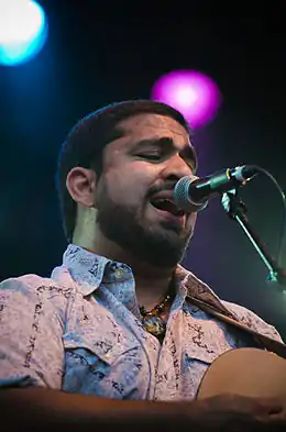 Upon graduating Korula began working as a singer-songwriter in Los Angeles, largely performing acoustic music with a guitar.[6] Early on he collaborated with jazz musicians around the city,[6] teaming up with guitarist Anthony King in 2002 and performing as an acoustic duo at open mics, coffeehouses, and music venues.[1] In 2002 he also collaborated with saxophonist Dan Boissy[9] and harmonica player Marcus Milius. Once he began playing with a regular lineup, in 2002 Korula founded The Nikhil Korula Band, or The NK Band.[1] The group blends calypso, rock, reggae, African and Latin sounds.[2] Their first performance as a sextet was a sold-out show at the Knitting Factory on July 25, 2002.[1]