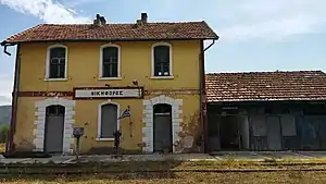 Nikiforos railway station (Greek: Σιδηροδρομικός Σταθμός Νικηφόρου, romanized: Sidirodromikós Stathmós Nikiforos) is a railway station that serves the Northern Greek village of Nikiforos, in Drama in East Macedonia and Thrace, Greece. The station is located within the settlement limits. The neoclassical station building (as of 2021) is unstaffed and in a rundown state. The station building and some of its auxiliary buildings have been classified as monuments.